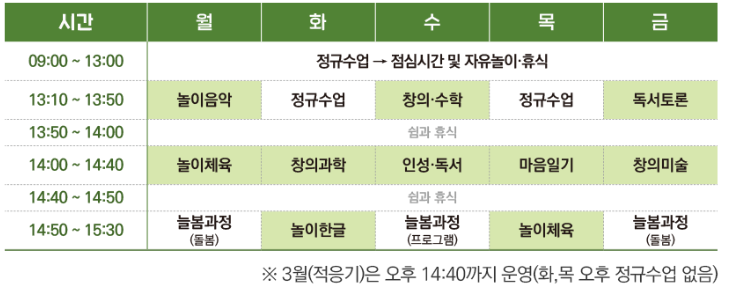3. 예시 : 늘봄학교 초1 맞춤형 프로그램 운영 시간표