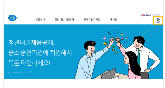 1. [청년내일채움공제 바로가기]를 클릭하여 메인페이지로 이동합니다.
